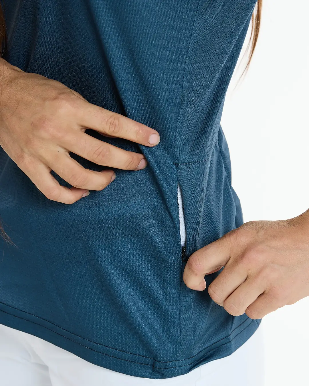 PASSFORMDies ist eine Standard-Passform.Es hat schöne Seitennähte, die sich an den Körper anpassen. Wir würden sagen, dass es etwas kleiner ausfällt. Wenn du zwischen zwei Größen liegst und unsicher bist, empfehlen wir, eine Größe größer zu wählen.STOFFHergestellt aus 100% recyceltem Polyester. Der Stoff ist atmungsaktiv und feuchtigkeitsableitend, aber dennoch widerstandsfähig genug, um auf den Trails durchzuhalten.